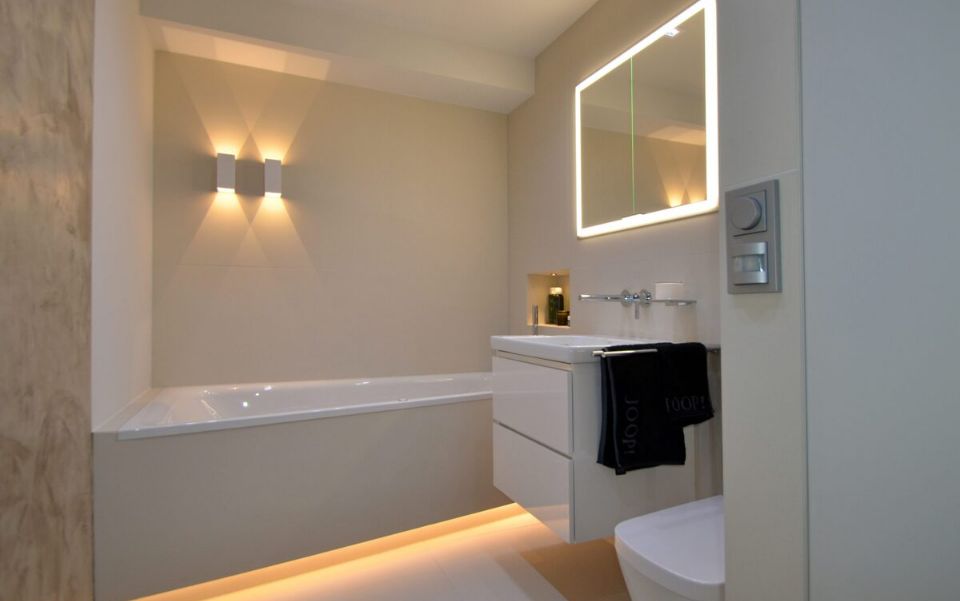 Neben der Reinigungsfreundlichkeit finden individuelle Stauräume und -möglichkeiten großen Gefallen. Mit einer großzügigen Duschfläche und einem geschickten Einsatz der Fliesengestaltung lassen sich auch innerhalb eines Standardbudgets ausdrucksvolle Badeinrichtungen umsetzen. Eine gekonnte Lichtinszenierung stellt das Sahnehäubchen dar.